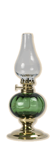 Table paraffin lamp with a glass container for paraffin in green colour. Base made of polished, brass metal sheet. Amber, ruby, cobalt and transparent colours of containers are also available. Its parts are brass, patina or polished. Height 24 cm, weight about 0.21 kg. |