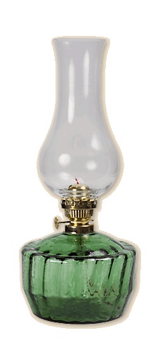 Table paraffin lamp with a glass container for paraffin in green colour. Burner made of polished, brass metal sheet. Amber, ruby, cobalt and transparent colours of containers are also available. Its parts are brass, patina or polished. Height 27 cm, weight about 1 kg. |