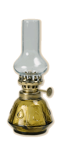 Table paraffin lamp with a glass container for paraffin in amber colour. Burner made of polished, brass metal sheet. Green, ruby, cobalt and transparent colours of containers are also available. Its parts are brass, patina or polished. Height 14 cm, weight about 0.1 kg. |