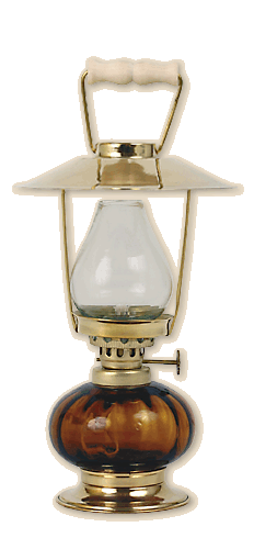 Table paraffin lamp with a ruby glass container for paraffin and a bright wood handle. Burner and stand made of polished, brass metal sheet. Green, amber, cobalt and transparent colours of containers are also available. Its parts are brass, patina or polished. Height 18 cm, weight about 0.21 kg. |