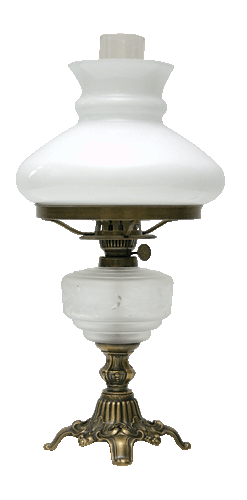 Traditional, table paraffin lamp available also as a electric one, height 39 cm. Its patin base is made of brass cast. The burner and the flange which supports the milk-white shade are made of patina brass sheet metal. Green, ruby, cobalt and amber colours of containers are also available. Its metal parts are brass, patina or polished. Makes a set with Emperor table lamp, Klio wall lamp and Elizabeth as wall as Gabriella chandelier. Weight about 2.0 kg. |