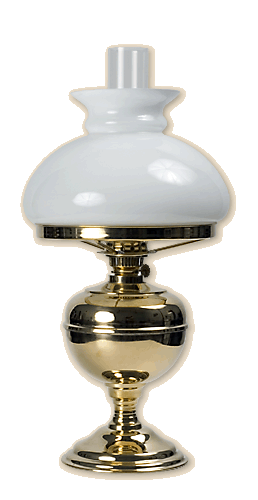 Traditionelle Tischöllampe, ca. 45 cm hoch, gänzlich aus gedrechseltem, poliertem Messingblech hergestellt. Der Fuß ist zusätzlich belastet, um eine bessere Stabilität zu gewährleisten. Der Schirm ist aus weißem Glas gefertigt. Es ist auch ein wellenförmiger Schirm erhältlich. Die Messingteile können patiniert oder poliert sein. Gewicht ca. 2,5 kg. |